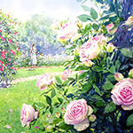 木漏れ日の風景やバラや紫陽花、メルヘン画、可愛い子供や女性、ペットを生き生きと描きます。